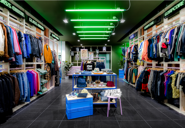 Glass Onion sell vintage clothes that have been sourced from textile recycling plants across Europe and the USA.