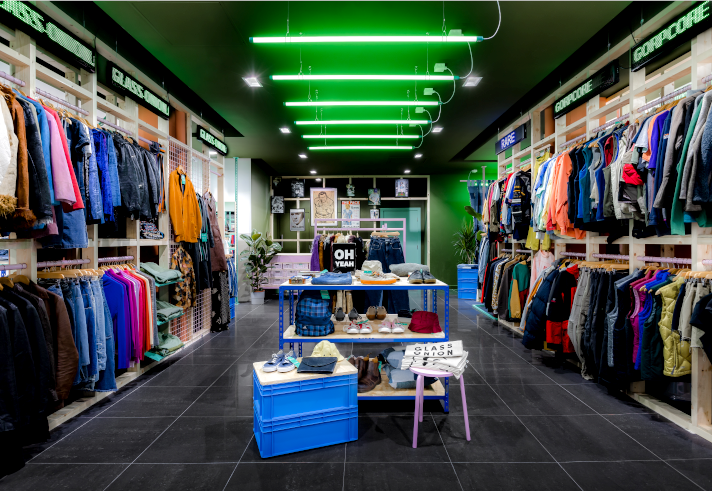 Glass Onion sell vintage clothes that have been sourced from textile recycling plants across Europe and the USA.