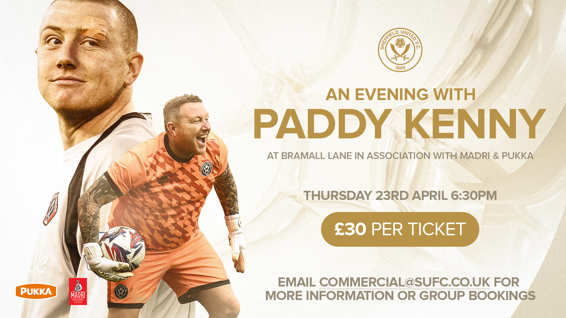 An evening with Paddy Kenny at Bramall Lane in Association with Madri and Pukka.